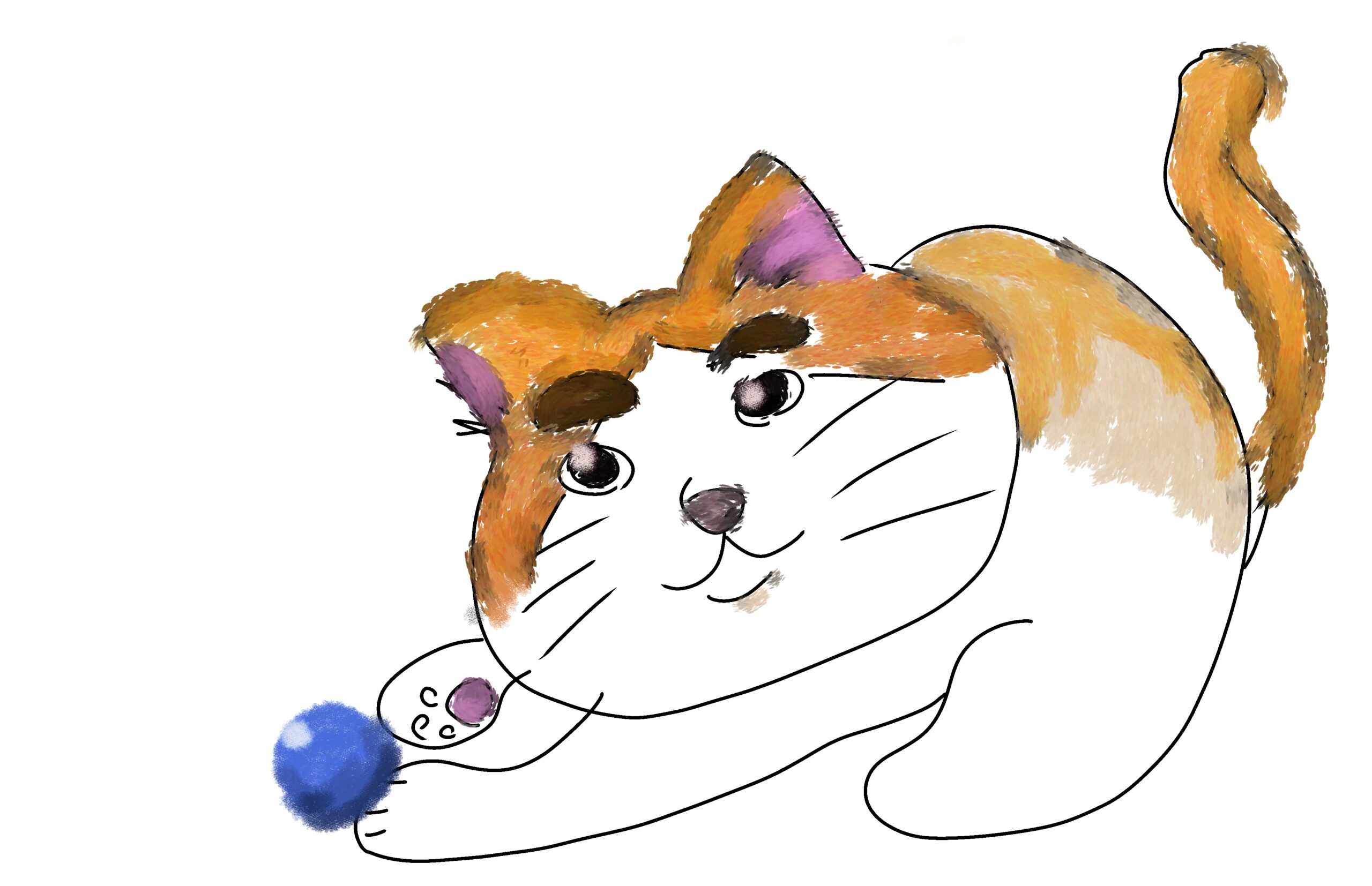 ボールで遊ぶ三毛猫です。