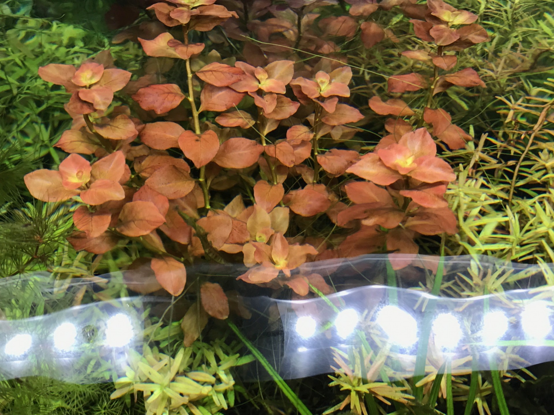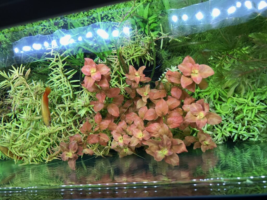 緑色が多い水草の中でオンリーワンな色合いをしているので、私のお気に入りの水草の1つです。
