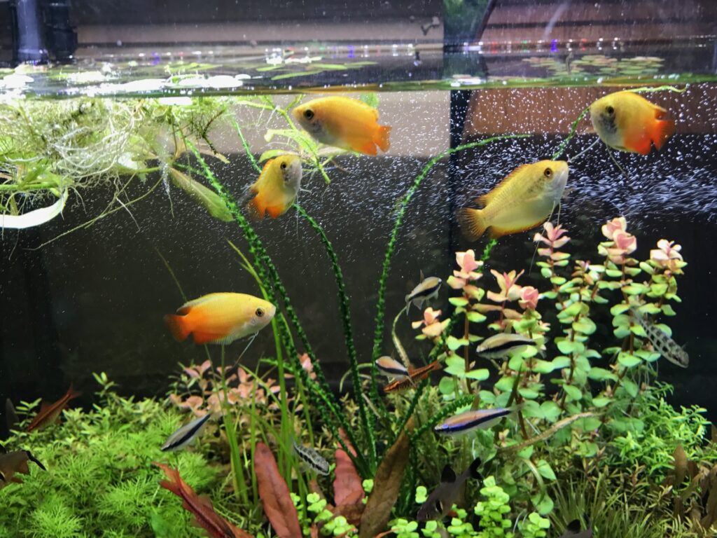 当然、黄色の魚は他にもいるのですが、水草レイアウトの中でも目立つ黄色の体を持っているので、この魚が好きです。